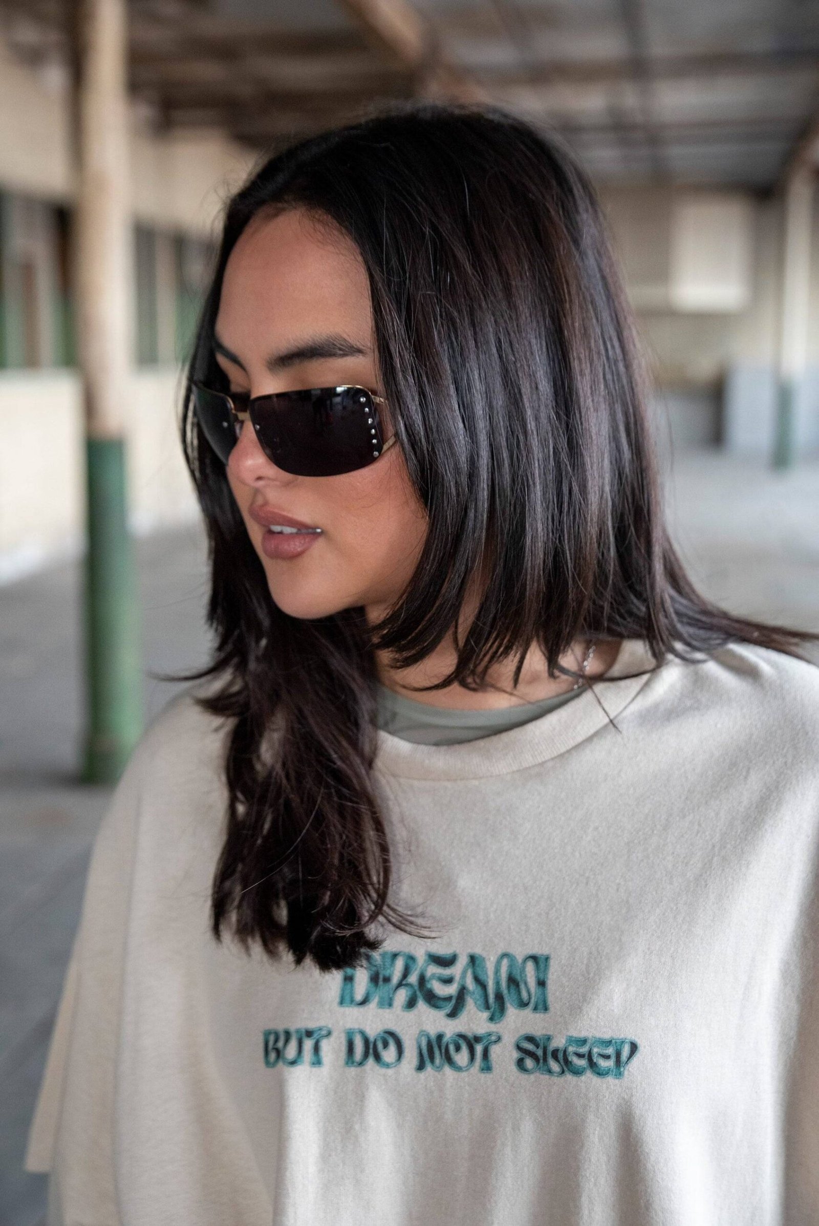 - Short Sleeved T-Shirt in Sand With Cursive Logo